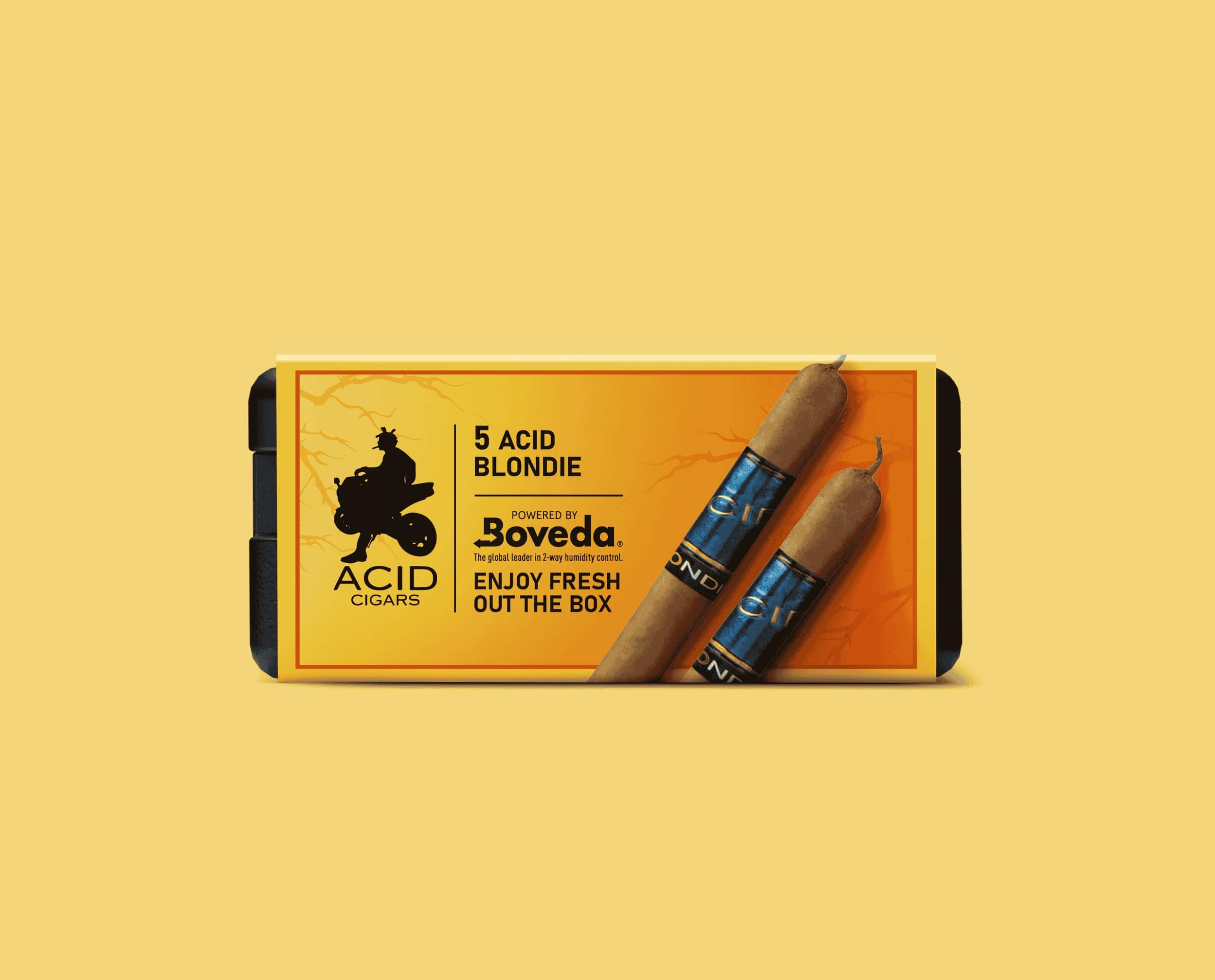 Indulge in the playful, aromatic experience of the Acid Blondie, a 5-pack crafted for smokers who enjoy infused flavors and a lighter, aromatic smoke. Complete with a personal humidor, this set keeps your cigars fresh and ready for any occasion.