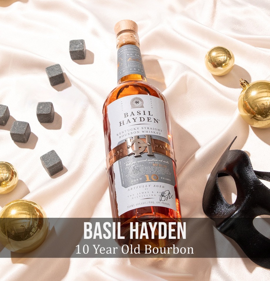 Bail Hayden 10 Year Old Bourbon Whiskey is a special, extra aged seasonal offering that will be made available as a limited edition whiskey each holiday season. Bottled at 80 proof, the extra maturation of this high rye bourbon in American oak barrels is said to offer “an additional layer of complexity” that “delivers heightened oak aromas along with hints of char and vanilla while maintaining Basil Hayden trademark spice in every sip.”