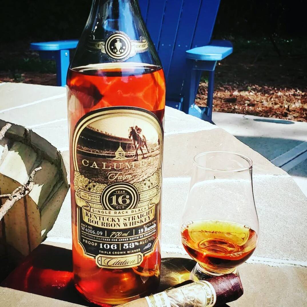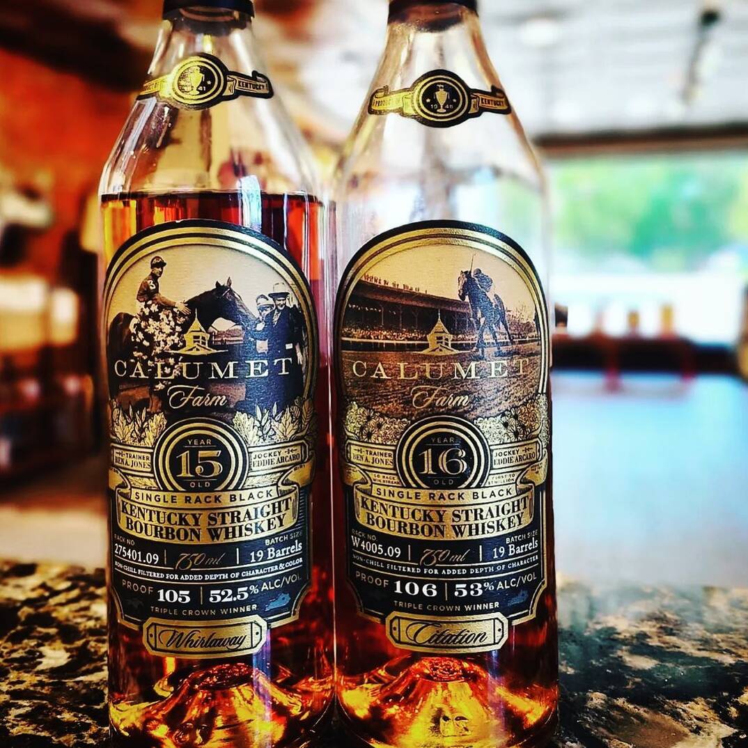 Calumet Farm 16 Years Single Rack Black Poof 106 Kentucky Straight Bourbon Whiskey Calumet Farm 16 Years Single Rack Black Poof 106 Kentucky Straight Bourbon Whiskey