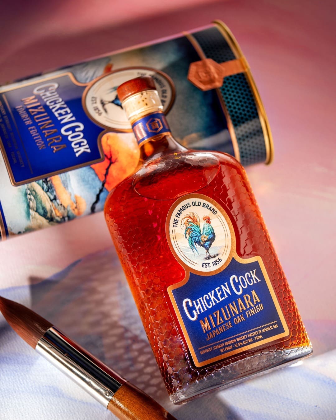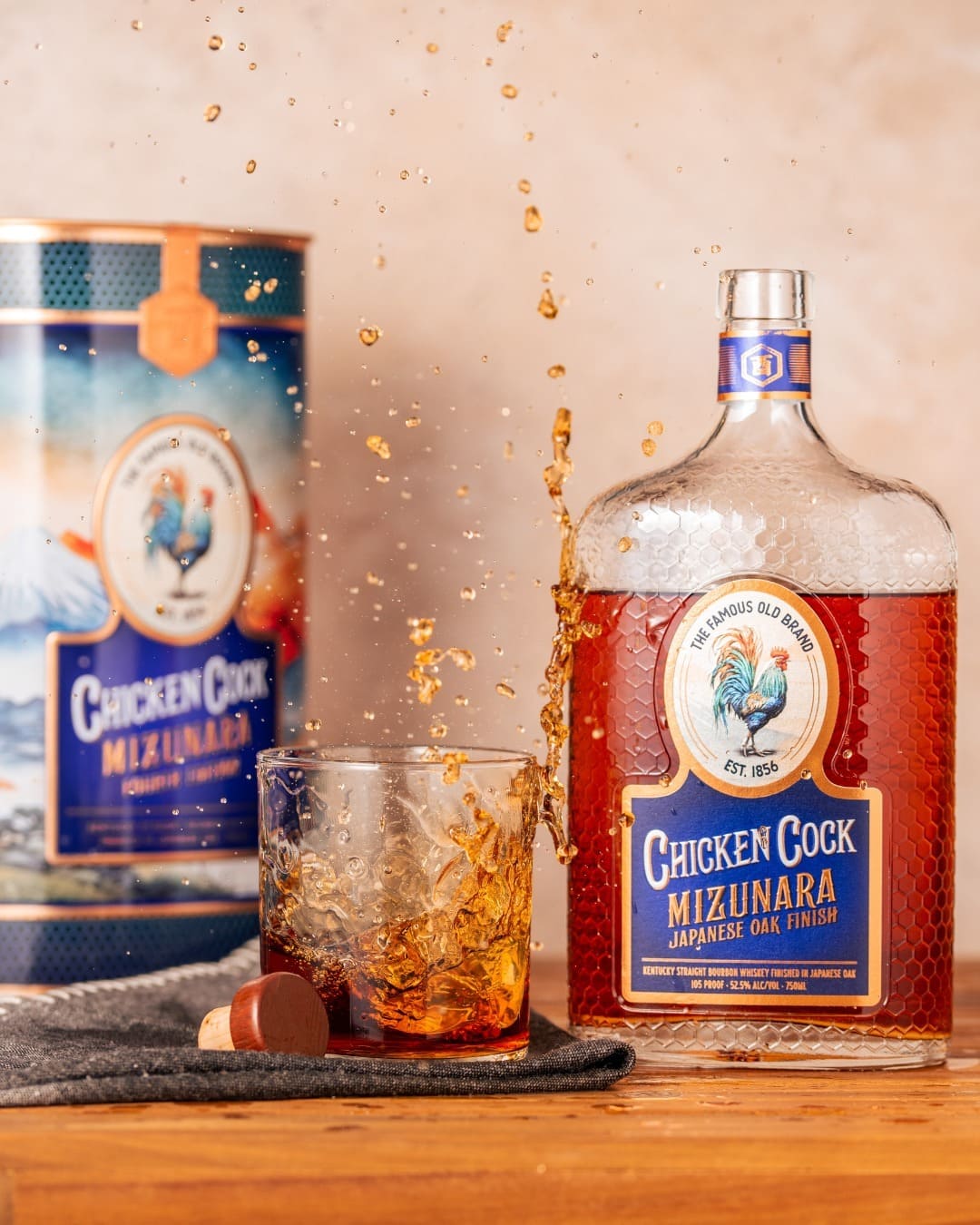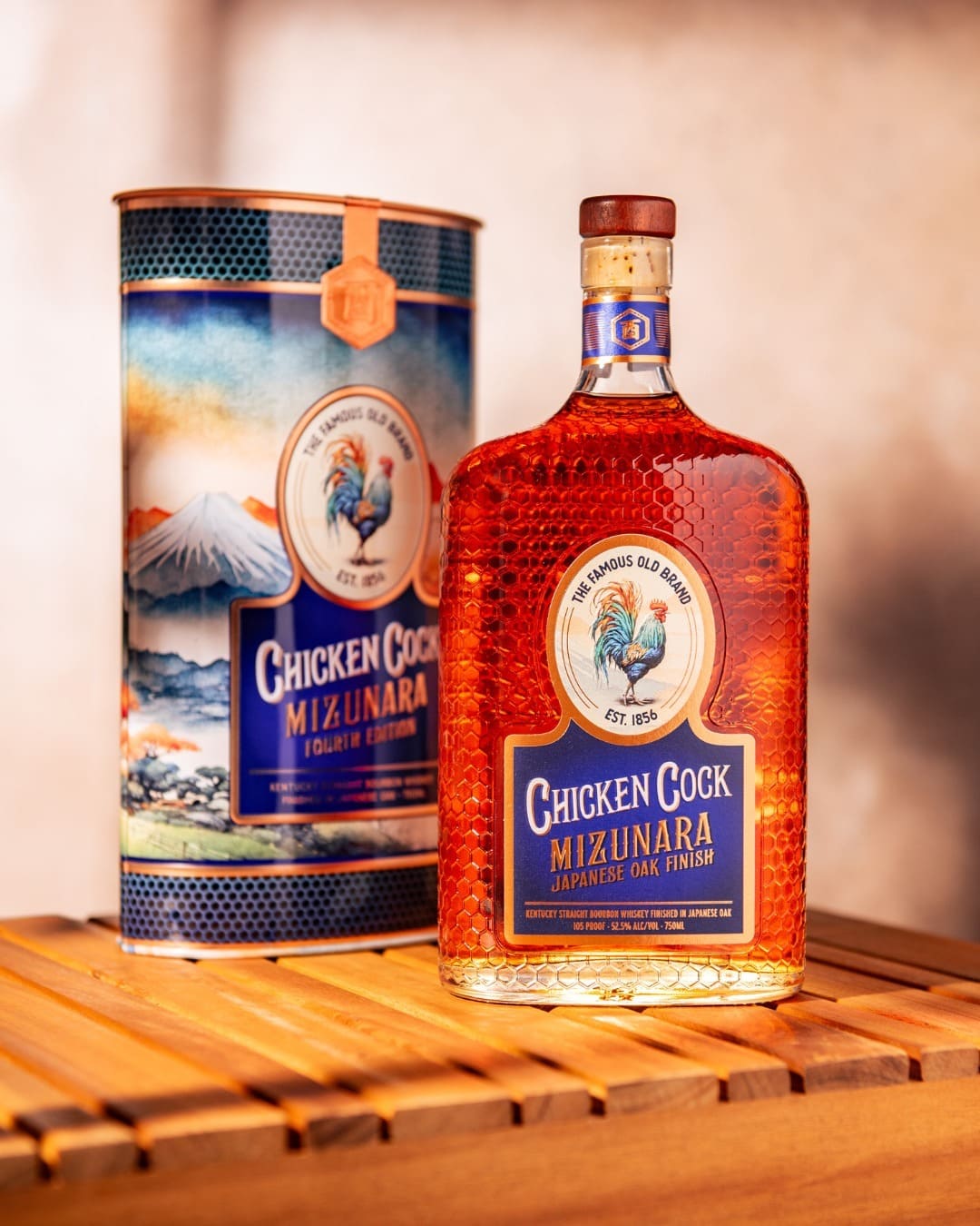 James A. Miller, the founder of Chicken Cock Whiskey, took so much pride in his beloved chickens and his exceptional whiskey it led him to name his whiskey "Chicken Cock.” To this day we continue to take pride in the beautiful roosters that adorn our exceptional whiskey. As such, the fourth edition of Chicken Cock’s limited annual tin release is guided by a like-minded pride in roosters and good whiskey. The Onagadori rooster and Mizunara Oak from Japan inspired this year’s release.