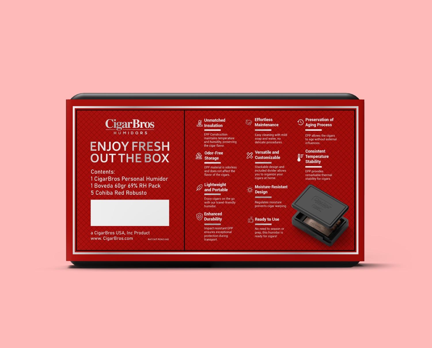 Each set comes with a personal humidor featuring a Boveda pack, which keeps your cigars at optimal humidity and flavor for up to a year. Replace the pack as needed to maintain peak freshness.