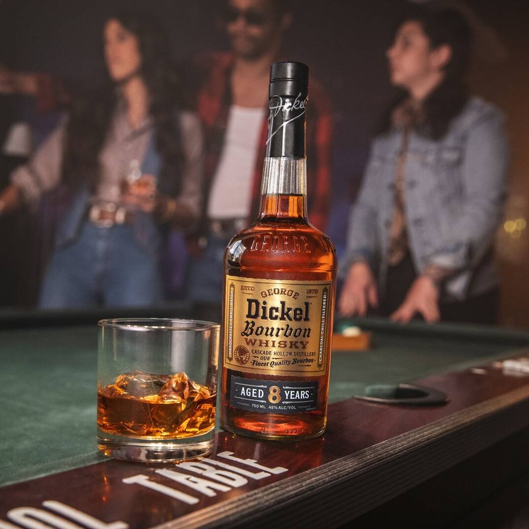 Dickel Bourbon is a handcrafted, small-batch bourbon that's been aged 8 years and blended to perfection. The liquid boasts sweet initial notes of vanilla leading into bright hints of cherry and orange before being balanced by almond toffee and oak. At 90 proof, bourbon enthusiasts can best enjoy Dickel Bourbon neat or on the rocks, in addition to mixing it into some of their favorite cocktails, like an Old Fashioned.