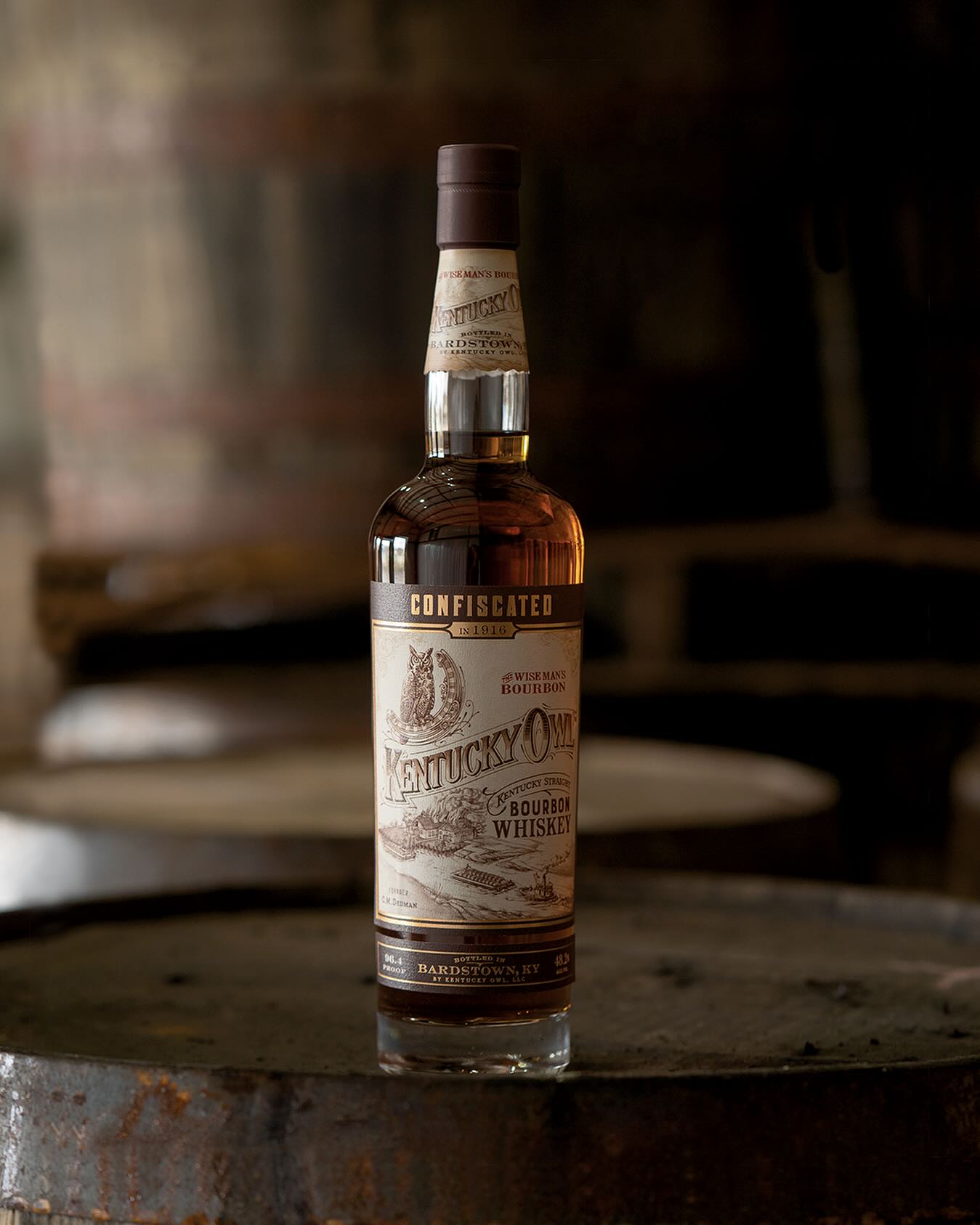 Kentucky Owl was founded by Charles Mortimer Dedman, a local pharmacist, in 1879. After marrying his wife, Dedman was given a large parcel of land on the banks of the Kentucky River, as a wedding gift from his adopted father who was a local town judge. C.M. Dedman Distillery was established here on the banks of the Kentucky River, producing "The Wise Man's Bourbon" under Distilled Spirits Plant Designation "No. 16," one of Kentucky's original distilleries and part of a booming industry. Kentucky Owl achieved much success and production continued until Prohibition halted distillation. The family-run facility was no match for the "forces of teetotalism, temperance and eventually, the Feds" (producer). In 1916, Prohibition left several local distilleries with ample reserves of bourbon. As for Kentucky Owl, approximately 250,000 gallons of bourbon were left over in various stages of aging. Today these reserves would be worth about $40 million in inventory. After Federal agents descended on the Dedman's distillery, the bourbon was seized and shipped up the river by barge to the state capital in Frankfort for "safekeeping" in a warehouse. Currently Kentucky Owl is in the midst of designing a stunning state-of-the-art distillery park with rickhouses for aging, a bottling center, as well as a vintage dinner train to stop on the property. Kentucky Owl Park will be built at Cedar Creek Quarry in Bardstown. The 420-acre site will boast beautiful lakes with crystal clear, limestone-filtered water that will be used in our whiskey production. The Stoli Group has turned to the world-renownedShigeru Ban Architects to oversee the project. Bottled at 96.4 proof, Confiscated delivers notes of floral gardenia and honeysuckle, along with grape, red apple, orange cuties, wet banana bread and toasty sourdough bread crust on the nose. The palate is reminiscent of graham crackers, toffee, muted sweet cinnamon spice, and fresh-squeezed orange juice balanced with white grapes and finishing with a hint of cayenne.